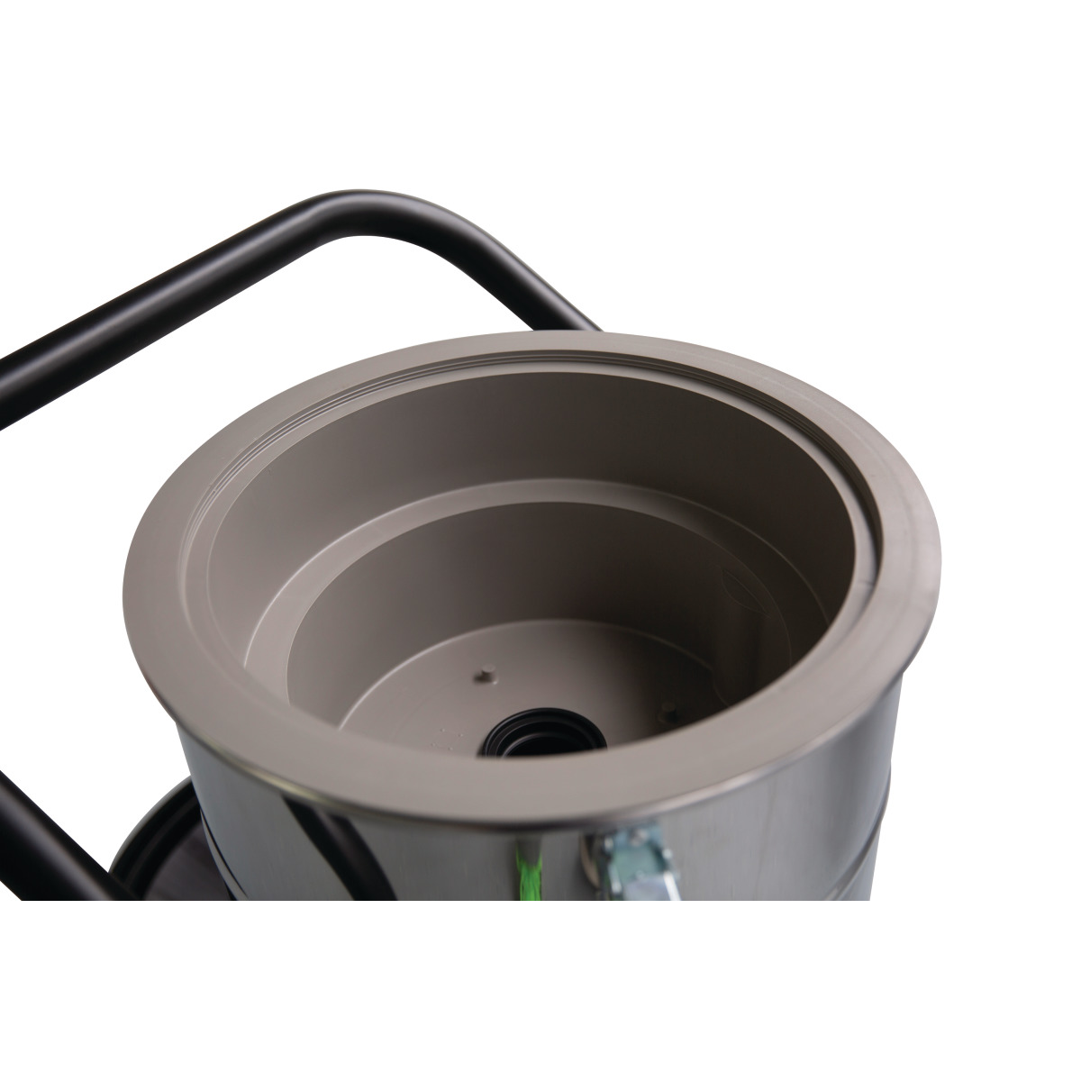 - Metallischer Schlauchanschluss am Behälter mit Verriegelung verhindert ungewolltes Lösen des Schlauchs während der Reinigung