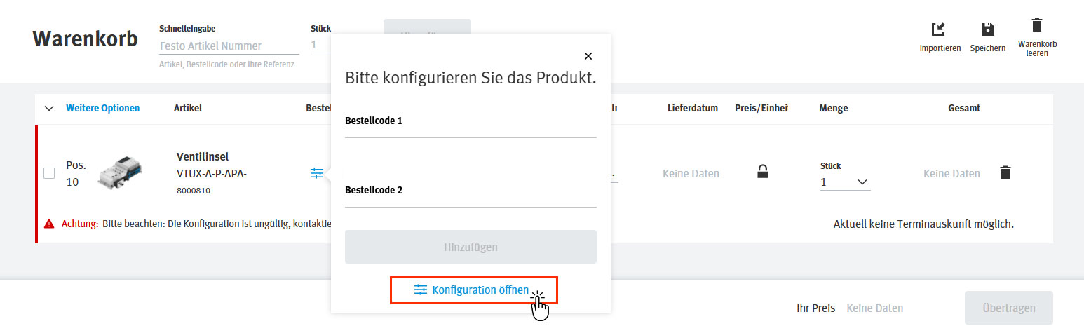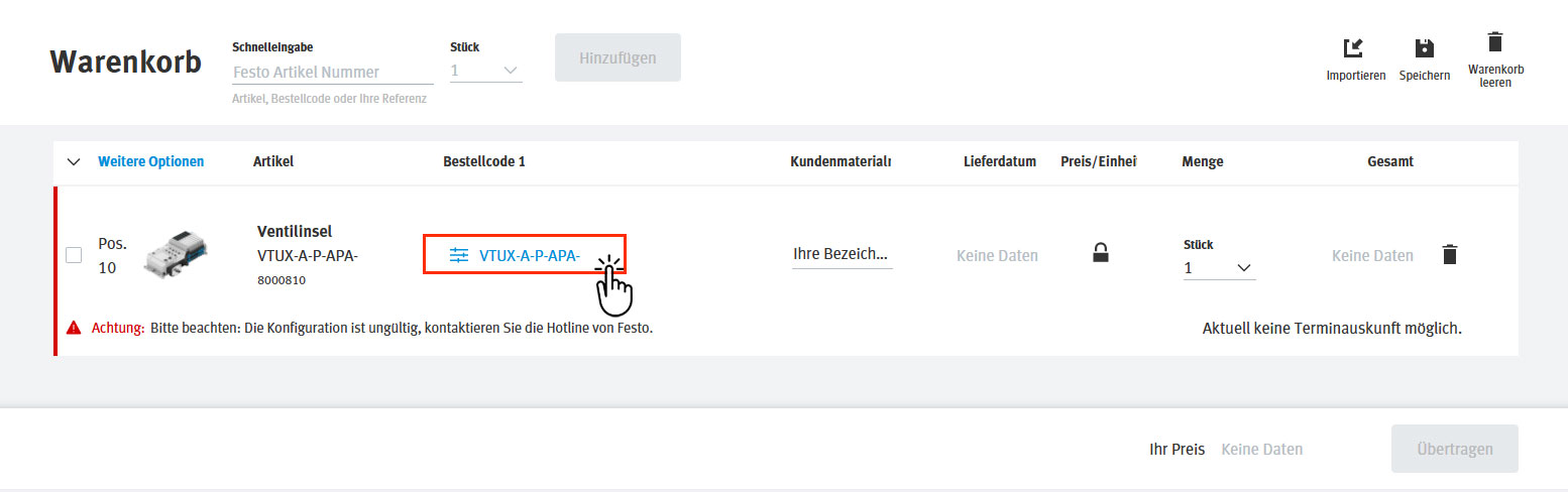 Viele Produkte von unserem Lieferanten Festo sind konfigurierbar und können in verschiedenen Ausprägungen bestellt werden.Konfigurieren Sie jetzt Ihre Zylinder, Ventilinseln, Schwenkantriebe, uvm. direkt im original Festo-Konfigurator und tätigen Sie anschließend Ihre Bestellung wie gewohnt in unserem Shop.