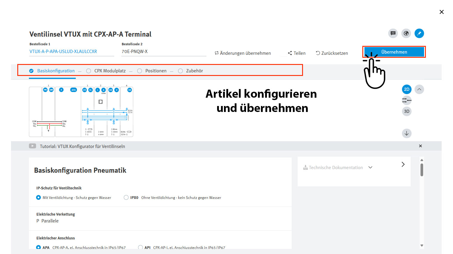 Nutzen Sie unseren Konfigurator, um die Ventilinsel ganz einfach an Ihre Anwendung anzupassen.