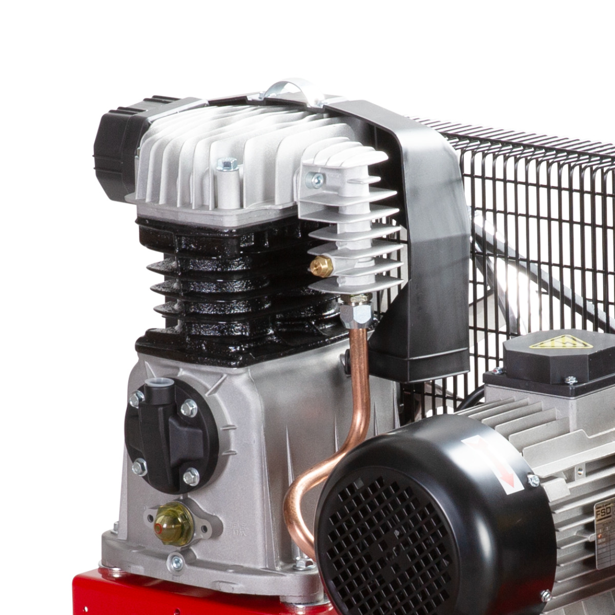 - Großes Lüfterrad und ein Kühlluftleitblech am Zylinder für optimale Kühlung des Verdichters