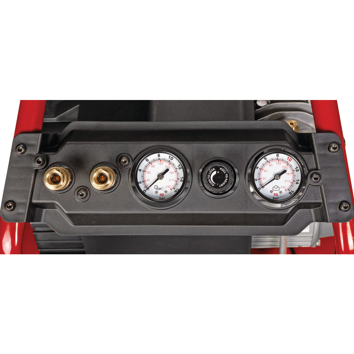 - Mit dem Druckregler kann der gewünschte Arbeitsdruck stufenlos fixiert werden.