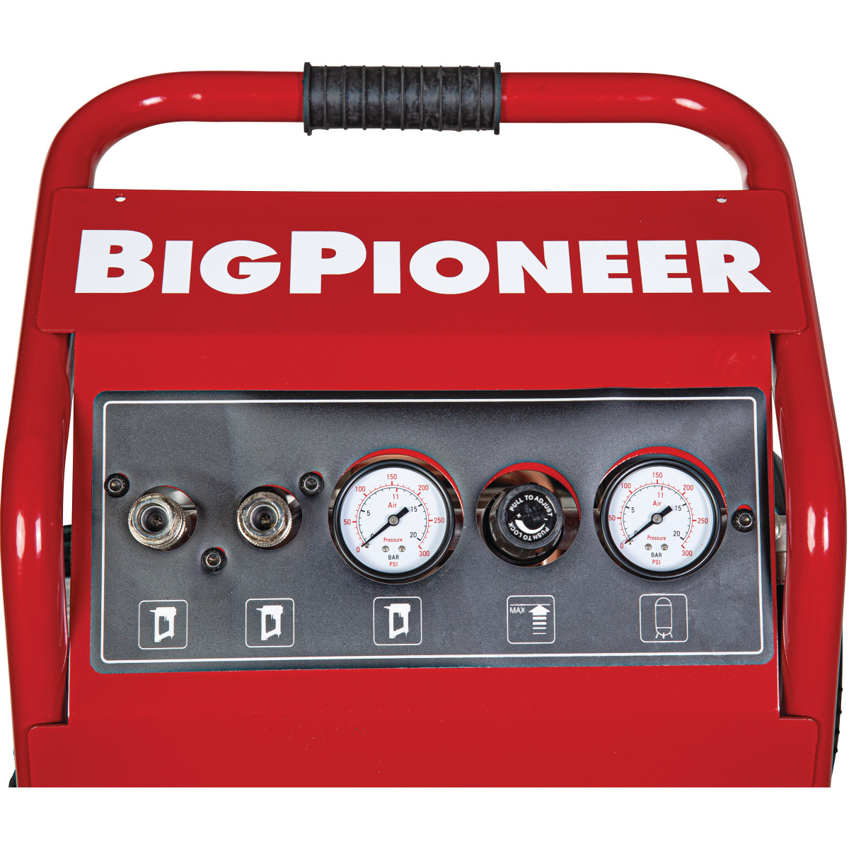 - Mit dem Druckregler kann der gewünschte Arbeitsdruck stufenlos fixiert werden.