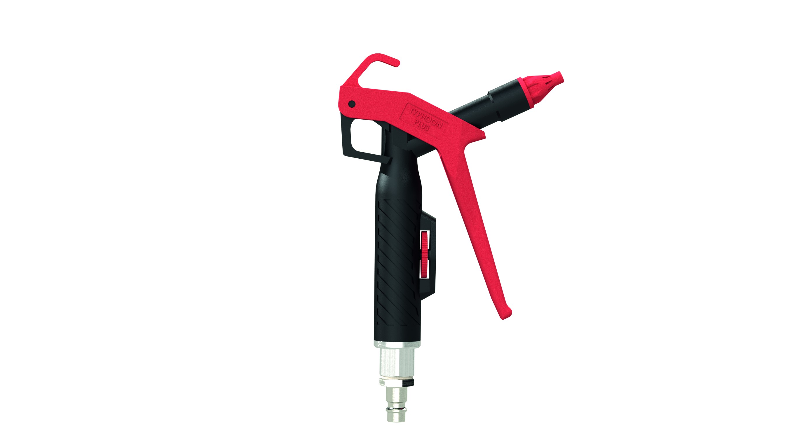 Hochleistungs-Blaspistole »Typhoon Plus«, Kunststoff, Betriebstemperatur -20 °C bis 60 °C, PN max. 10 bar, Nippel NW 7,2 Stufenlos regelbare, leichtgewichtige und ergonomisch hervorragende Hochleistungs-Blaspistole mit ausgesprochen starker Blasleistung.Im Vergleich zu herkömmlichen Blaspistolen kann bei der »Typhoon Plus« der Durchfluss mittels Drehrad flexibel eingestellt werden.