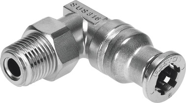 L-Steckverschraubung CRQSL-1/8-6 Edelstahlausführung; L-Form; Mit Außensechskant; Außengewinde R1/8; Für Schlauch Außen-Ø 6 mm; Packungsmenge 1 Stück; Lebensmitteltauglichkeit