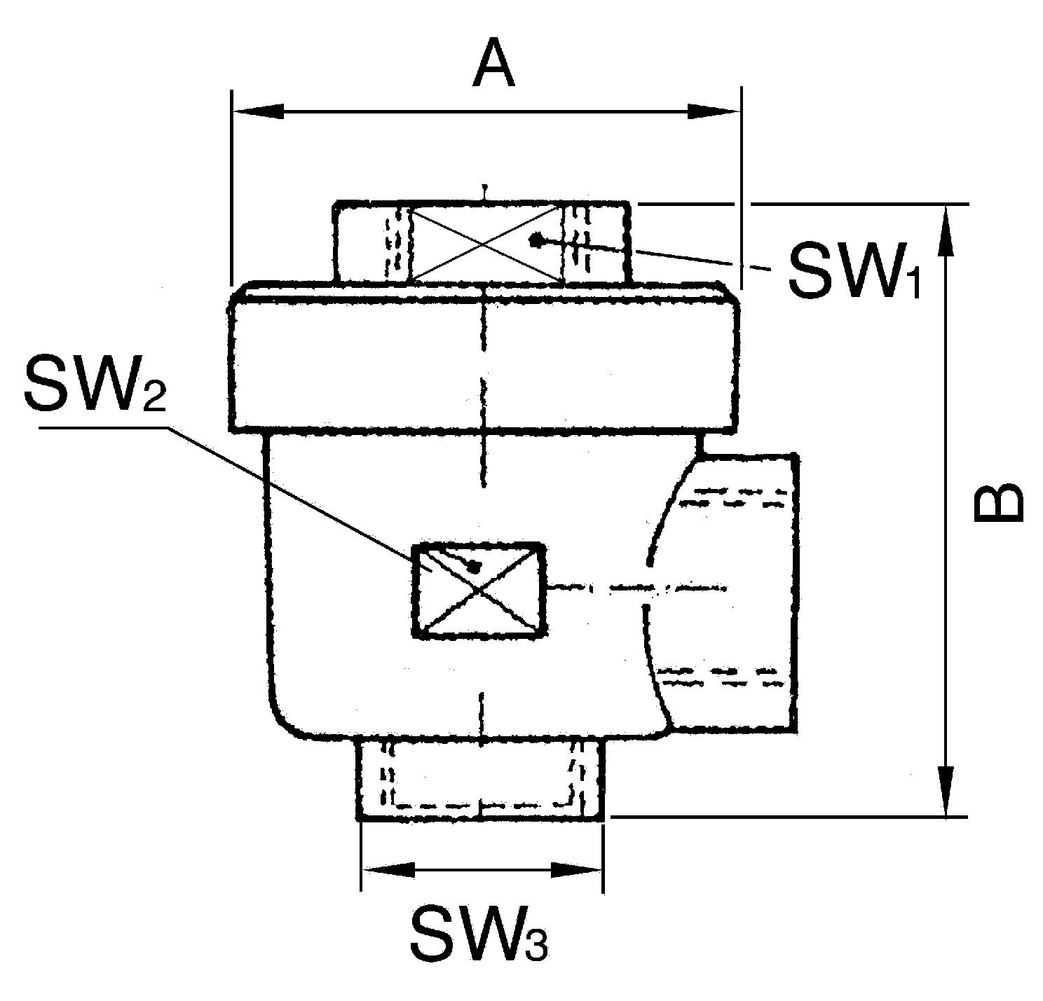 Schnellentlüftungsventil, G 1/8, SW1 14, SW2 14, SW3 14, Betriebsdruck max. 12 bar, Betriebstemp. -20°C bis 80 °C, Messing vern.