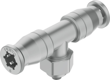 T-Steckverschraubung CRQST-M5-6 Edelstahlausführung; T-Form; Mit Außensechskant; Außengewinde M5; Für Schlauch Außen-Ø 6 mm; Packungsmenge 1 Stück; Lebensmitteltauglichkeit