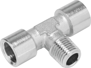 T-Verschraubung NPFC-T-3M5-MFF T-Form; Außengewinde M5; Innengewinde M5; Innengewinde M5; Messing, vernickelt; Packungsmenge 10 Stück