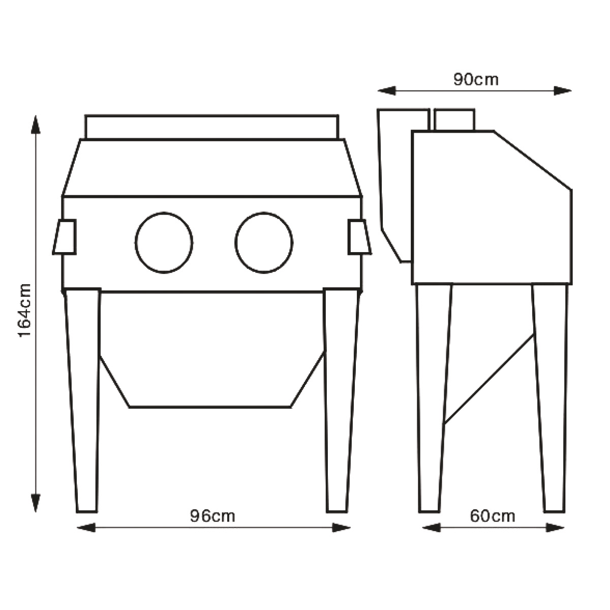 - Drei separate Schalter für Ein/Aus, Absaugung und Kabinenbeleuchtung