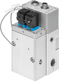 Ventileinheit VPCB-6-L-8-G38-10-F-D3-T22-M Druckbereich [bar]: 0 ... 10; Druckmessung: Intern; Baureihe: Ventileinheit; Sperrventilart: 2x 2/2-Sitzventil; Wegeventilart: Muffenventil; Ventilfunktion: 3/3-Wegeventil
